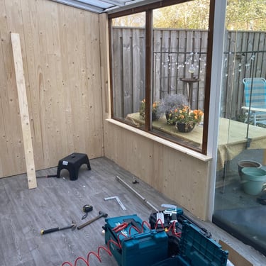 Blij met de nieuwe binnenwand. Netjes geplaatst en goed meegedacht. Kleine vertraging door materiaal, maar verder prima werk geleverd.